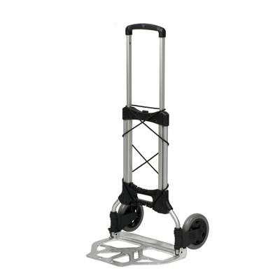 1. Diable en aluminium pliable, compact, léger, très plat, avecun grand plateau pour les charges volumineuses,